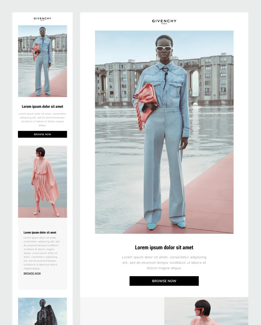 Rain had the opportunity to work with Givenchy, a world-renowned luxury fashion brand, to redesign their responsive email templates. The goal of the project was to create a cohesive and visually stunning email campaign that reflected the brand's sophisticated and elegant aesthetic. By using a clean and modern design approach, we were able to elevate the brand's email communication and increase engagement with their audience. Our team worked closely with Givenchy to understand their brand vision and create custom templates that were tailored to their specific needs. The end result was a stunning set of responsive email templates that not only looked great, but also delivered results.